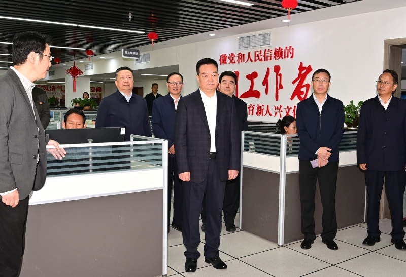2023年9月25日,西藏自治区党委书记王君正来到西藏日报社、西藏广播电视台调研。这是王君正在西藏日报社详细了解市场化运营、全媒体传播体系建设、媒体深度融合发展等情况。西藏日报记者 旦增西旦 摄