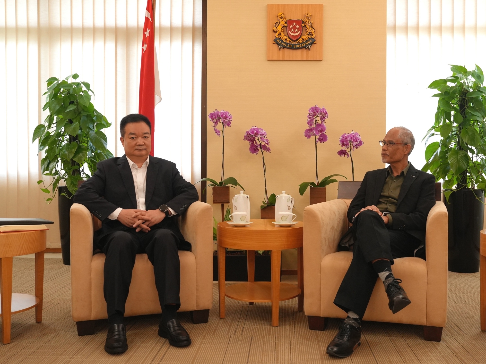 11月8日至17日,西藏自治区党委书记王君正率西藏自治区代表团访问尼泊尔、斯里兰卡、新加坡,这是王君正会见新加坡社会与家庭发展部长马善高。西藏日报记者 旦增西旦 整理