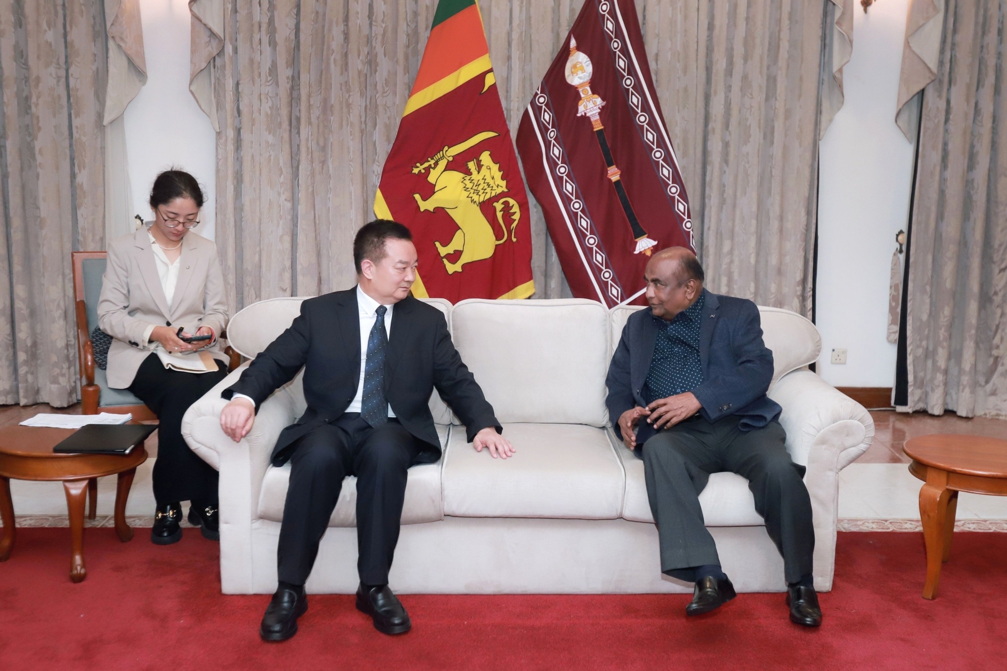 11月8日至17日,西藏自治区党委书记王君正率西藏自治区代表团访问尼泊尔、斯里兰卡、新加坡,这是王君正拜会斯里兰卡议长阿贝瓦德纳。西藏日报记者 旦增西旦 整理