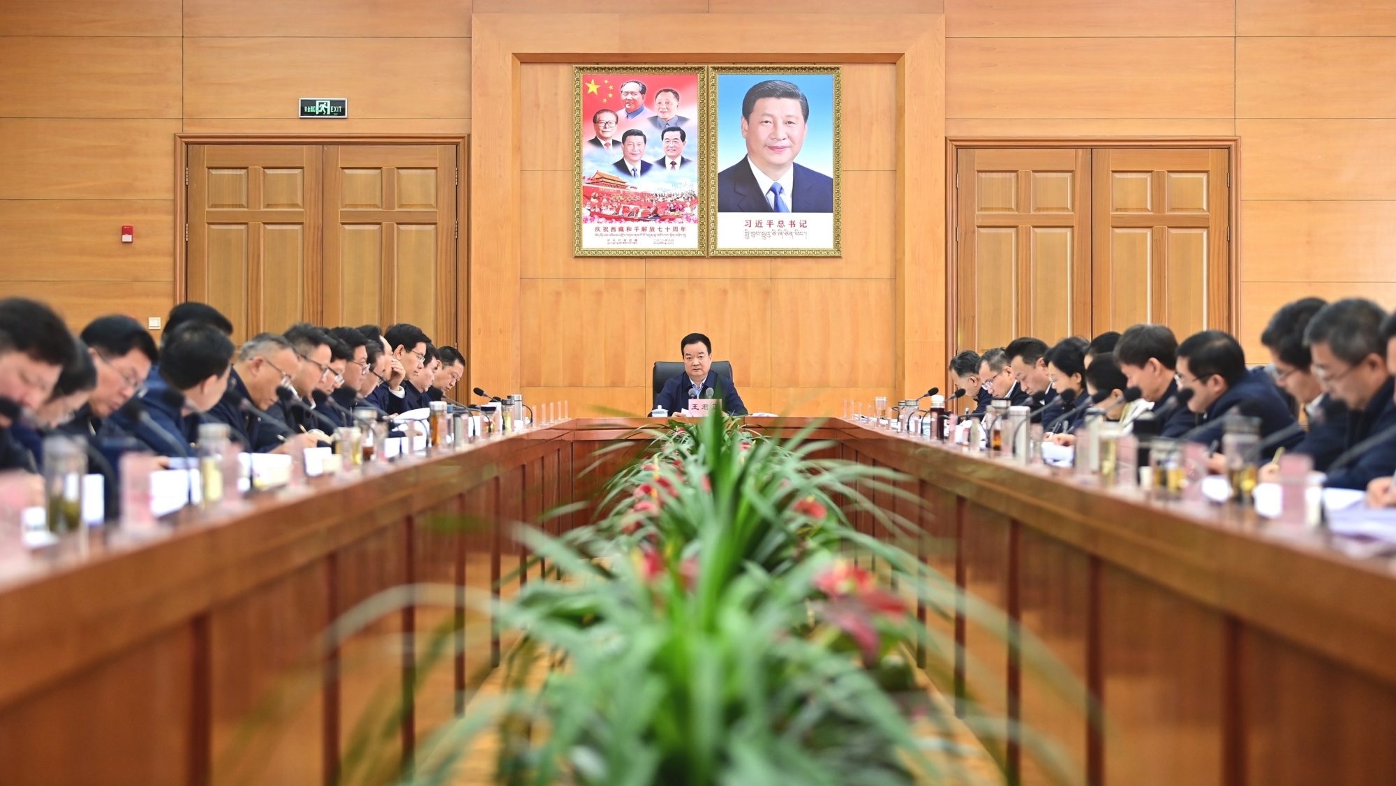 11月22日,西藏自治区党委书记王君正主持召开自治区党委常委会(扩大)会议。会议传达学习纪念毛泽东同志批示学习推广“枫桥经验”60周年暨习近平总书记指示坚持发展“枫桥经验”20周年大会等精神,研究贯彻落实工作。这是会议现场。西藏日报记者 旦增西旦 摄
