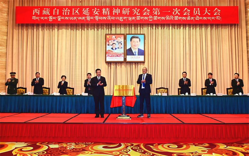 11月23日上午,西藏自治区延安精神研究会第一次会员大会在拉萨举行。自治区党委书记王君正讲话,中国延安精神研究会副会长林炎志宣读贺信,并共同为西藏自治区延安精神研究会揭牌。