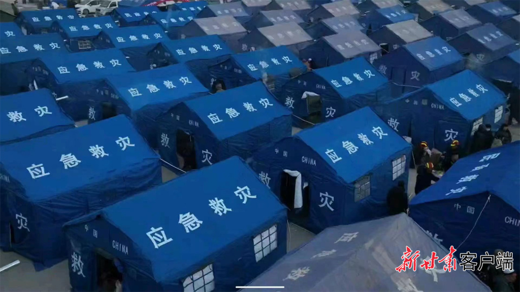 一顶顶救灾帐篷整齐排列。(本文图片均由新甘肃·甘肃日报记者 郁婕摄)