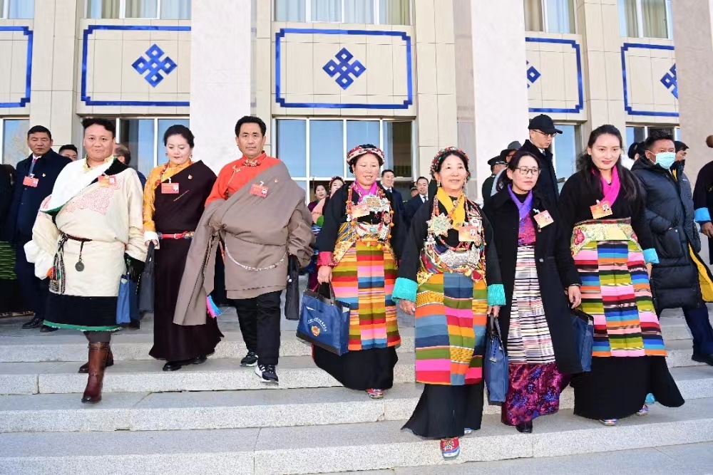 1月7日上午,西藏自治区第十二届人民代表大会第二次会议在拉萨开幕。这是参会代表和列席人员等走出会场。西藏日报记者 旦增西旦 摄