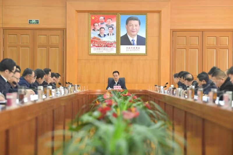 1月21日下午,自治区党委书记王君正主持召开自治区党委常委会(扩大)会议,认真传达学习习近平总书记近期重要讲话精神,听取相关工作汇报,安排部署西藏贯彻落实工作。西藏日报记者 旦增西旦 摄