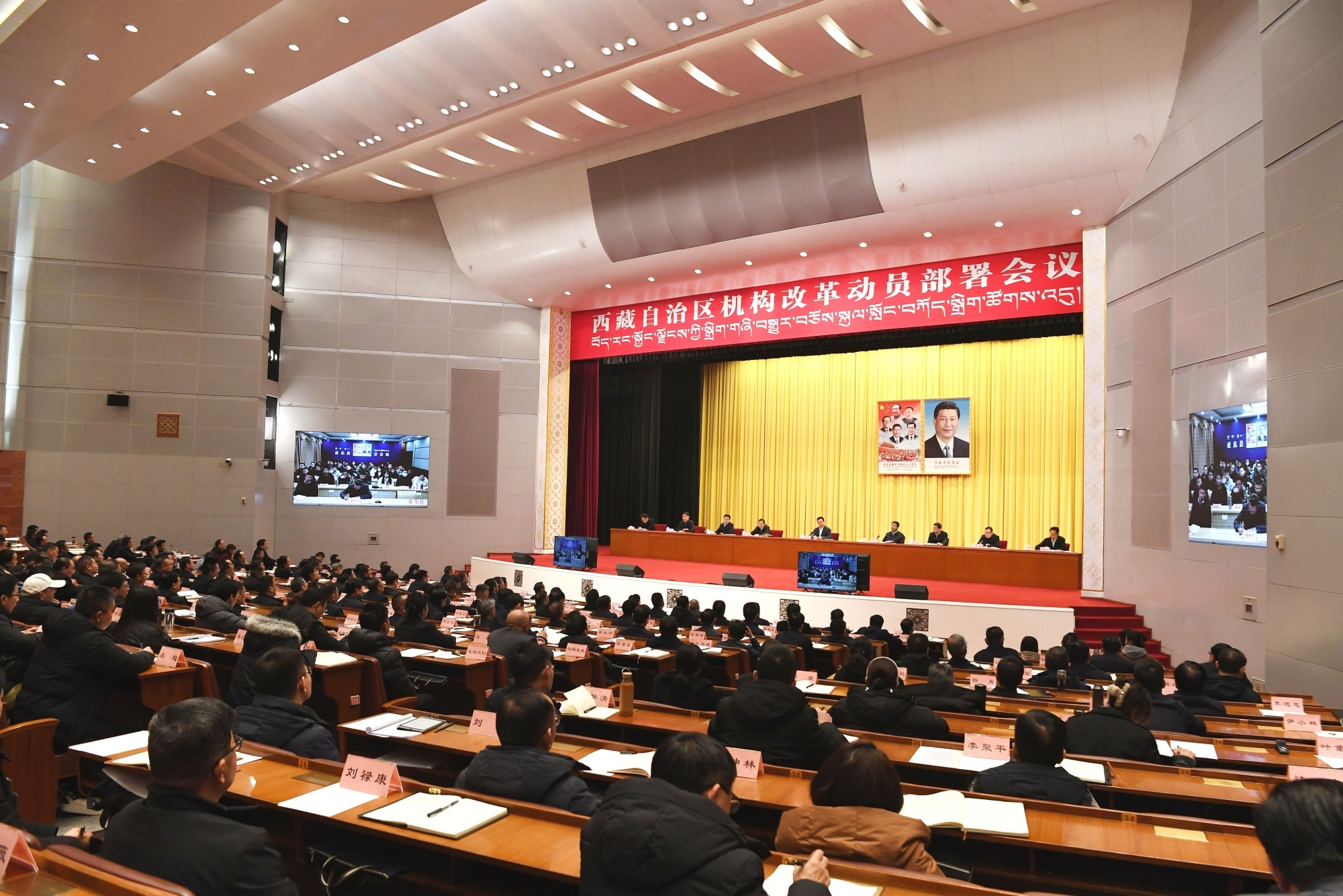 1月25日,自治区机构改革动员部署会议在拉萨召开。自治区党委书记王君正出席并讲话。这是会议现场。西藏日报记者 李洲 摄