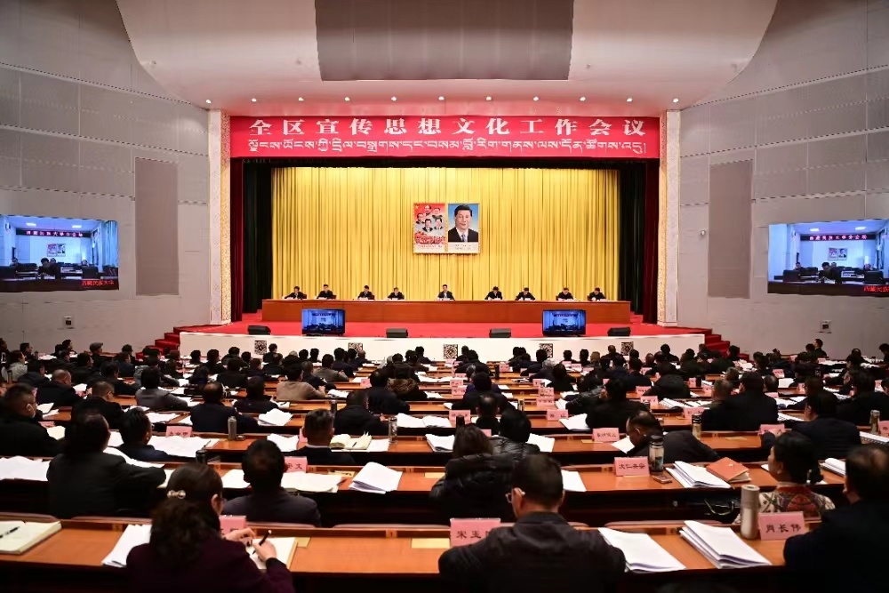 会议以视频会议形式召开。自治区省级领导同志,区(中)直单位、区直宣传思想文化系统各单位、中央驻藏新闻媒体主要负责同志,西藏军区、武警西藏总队、空军拉萨基地负责同志,各地市委宣传部部长参加。