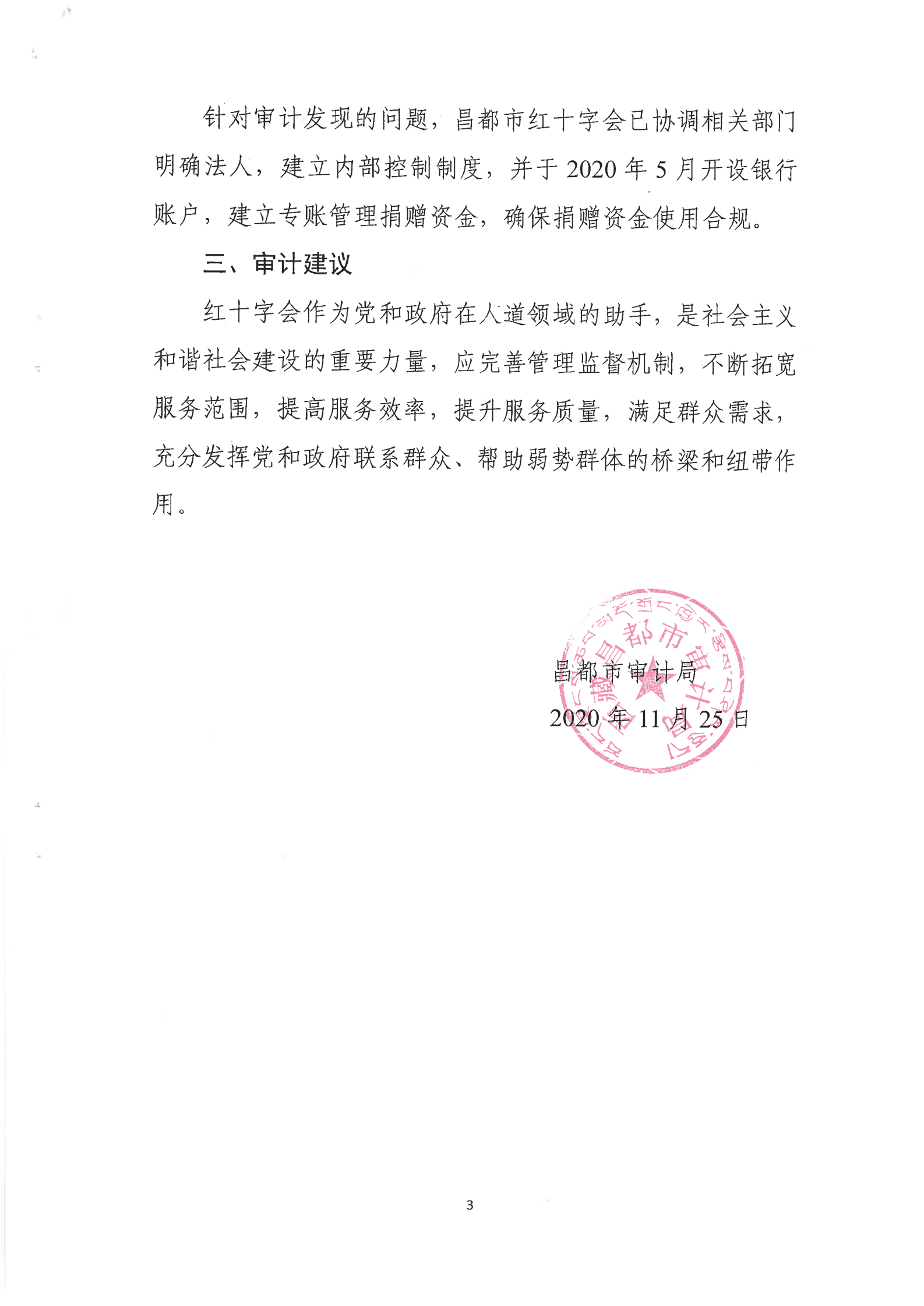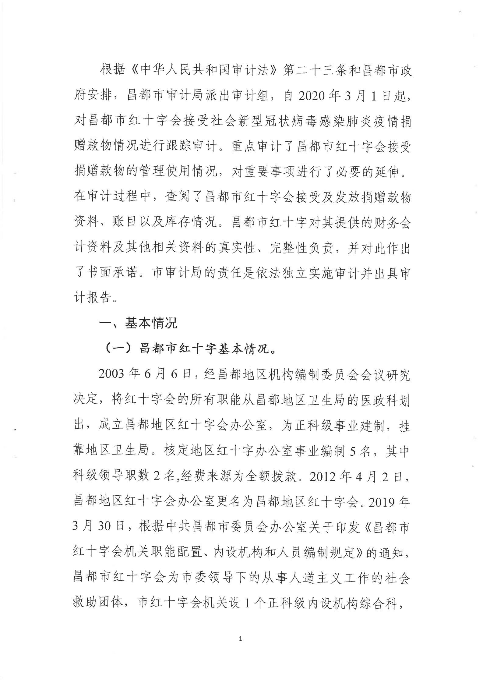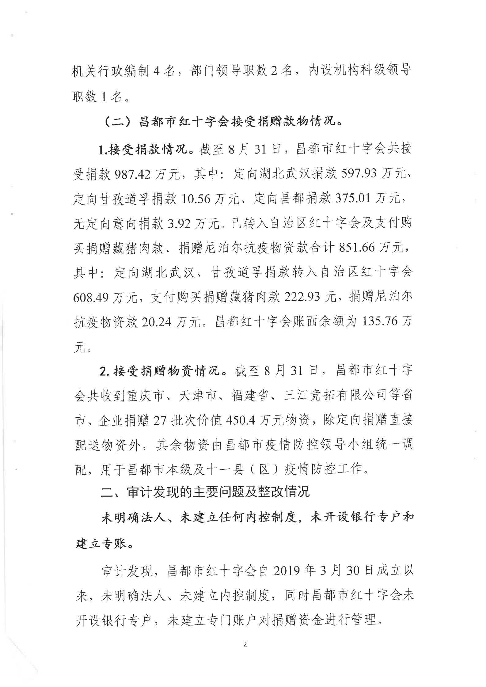 昌都市红十字会接受社会新型冠状病毒感染肺炎疫情捐赠款物情况跟踪审计