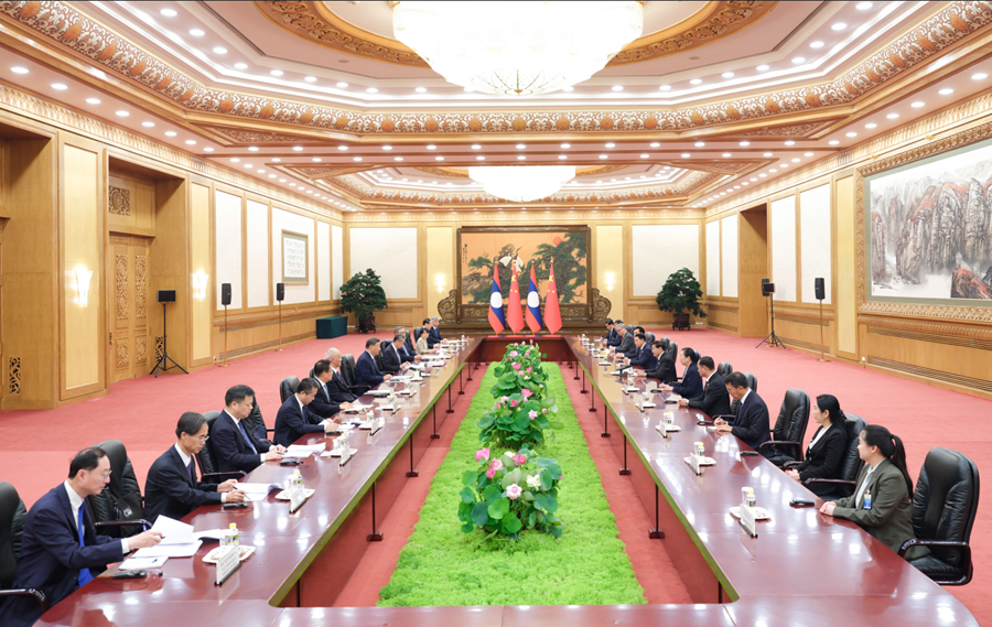 习近平强调,当前国际和地区形势发生复杂深刻变化,双方要以长远眼光和战略思维看待和把握中老关系,在涉及彼此核心利益和重大关切问题上坚定相互支持。要以明年两国建交65周年为契机,谋划开展好各领域交往。中方愿同老方深化治党治国经验交流,支持老挝人民革命党筹备和开好十二大。要以中老铁路运营和沿线开发为抓手,持续拓展“黄金大通道”辐射带动效应,推动重点项目提质升级。要深化防务、执法安全等合作,对跨境赌博、电信网络诈骗犯罪等持续高压严打。中方祝贺老挝成为上海合作组织对话伙伴,愿同老方在中国东盟合作、澜湄合作、东亚峰会等地区机制下深化协调和配合,促进地区和平与发展。