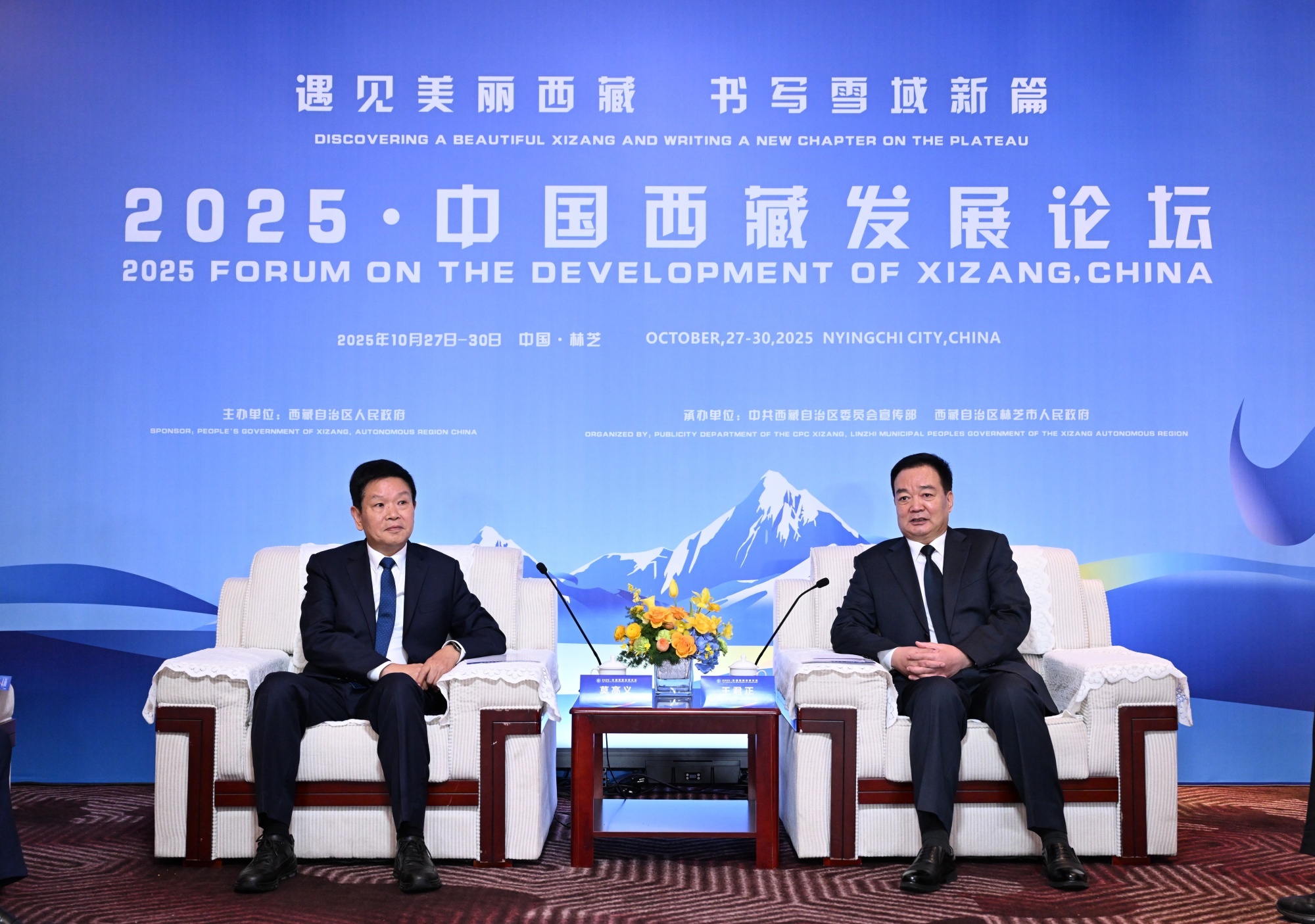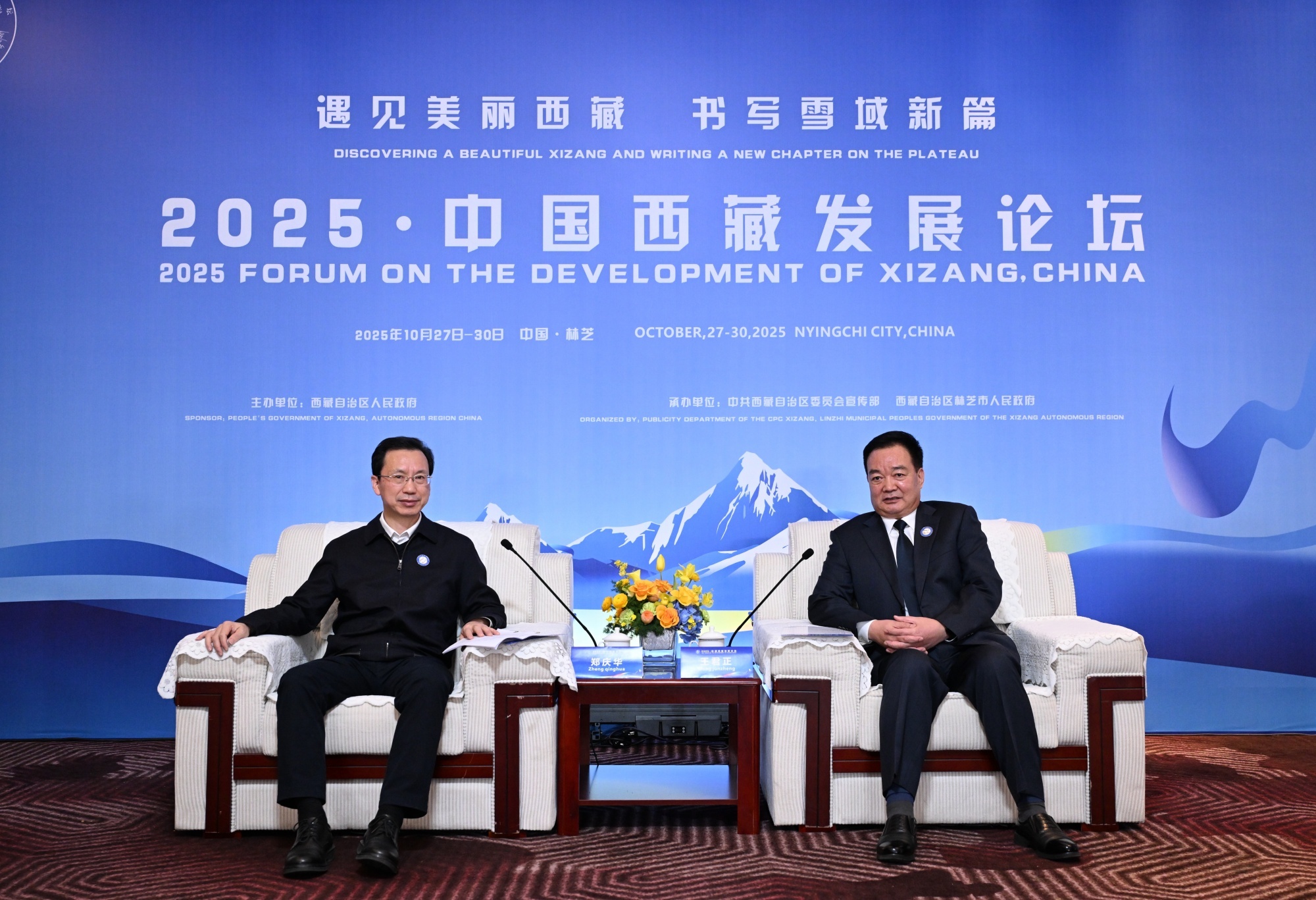 10月28日至29日,自治区党委书记王君正在林芝先后与参加2025·中国西藏发展论坛的嘉宾和国内专家学者代表座谈。自治区领导严金海、嘎玛泽登、刘江出席。