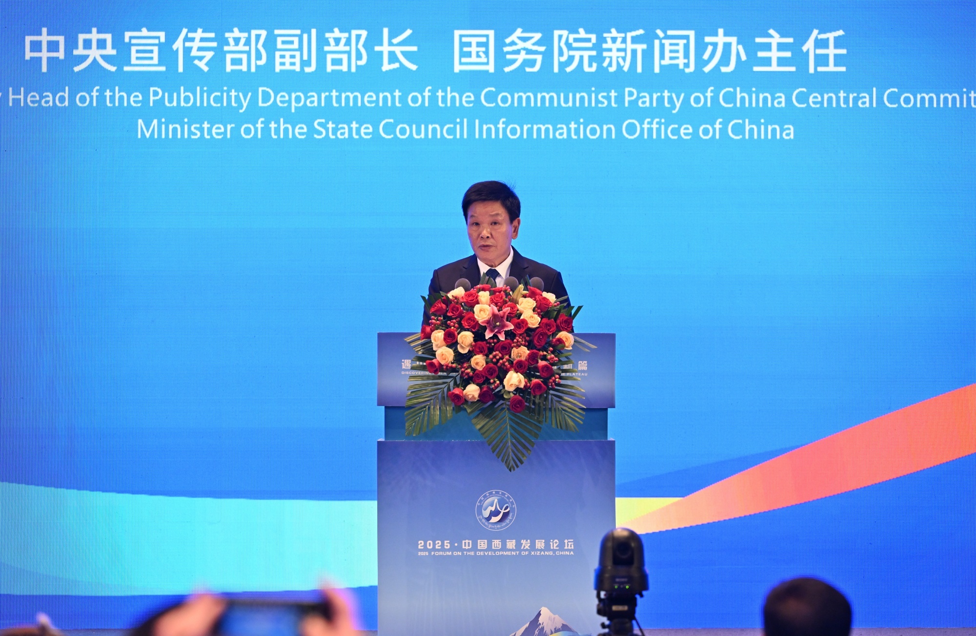 10月29日上午,以“遇见美丽西藏 书写雪域新篇”为主题的2025·中国西藏发展论坛在林芝开幕。这是中央宣传部副部长、国务院新闻办公室主任莫高义出席开幕式并致辞。西藏日报记者 旦增西旦 摄