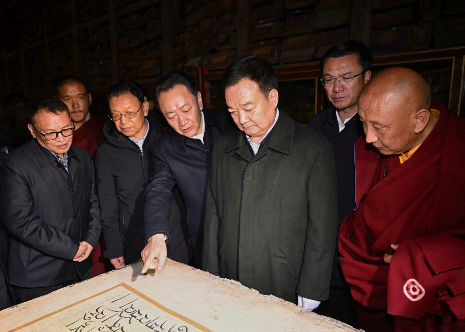 近日,自治区党委书记王君正在日喀则市调研宗教工作。这是王君正在萨迦寺与僧人亲切交流,详细了解寺庙历史、加强和创新寺庙管理、“三个意识”教育开展、文物保护等情况。西藏日报记者 旦增西旦 摄