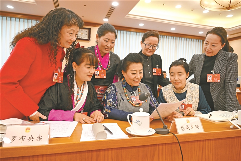 3月10日,西藏代表团举行全体会议,审议最高人民法院工作报告、最高人民检察院工作报告,审议生态环境法典草案、民族团结进步促进法草案、国家发展规划法草案修改稿。