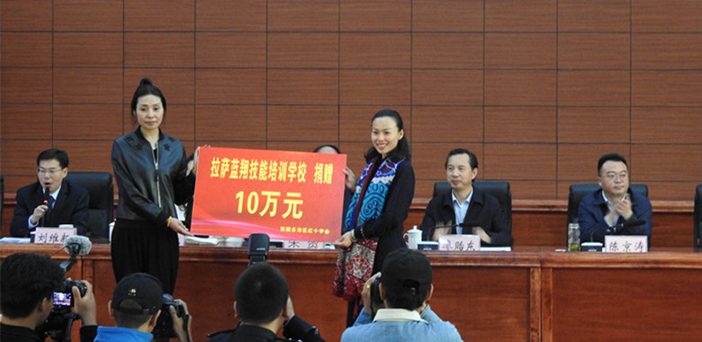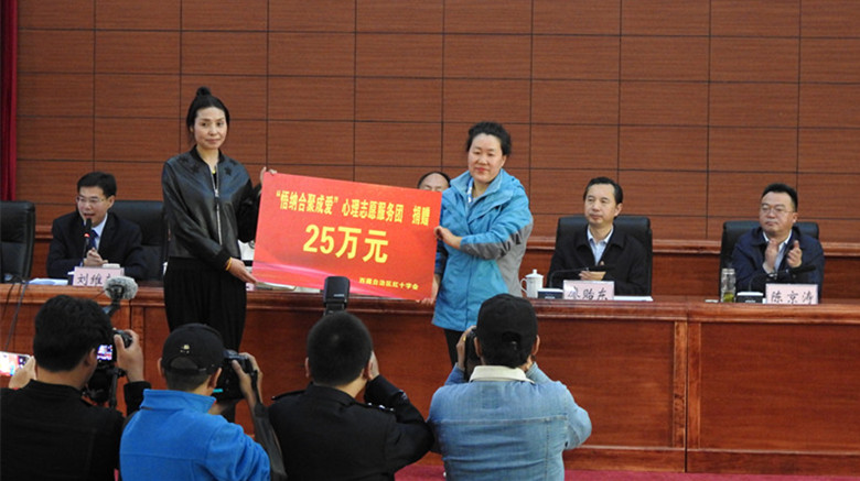 仪式上,拉萨蓝翔技能培训学校、西藏怡然旅游有限公司、“悟纳合聚成爱”心理志愿服务团、西藏山得文化传媒有限公司为“雪域心理护航工程暨爱佑心灵博爱基金”捐赠46万元。